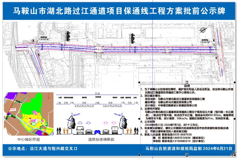 为了保障公众的规划知情权,维护相关利益人的合法权益,依法将马鞍山市湖北路过江通道项目保通线工程予以现场公示。01