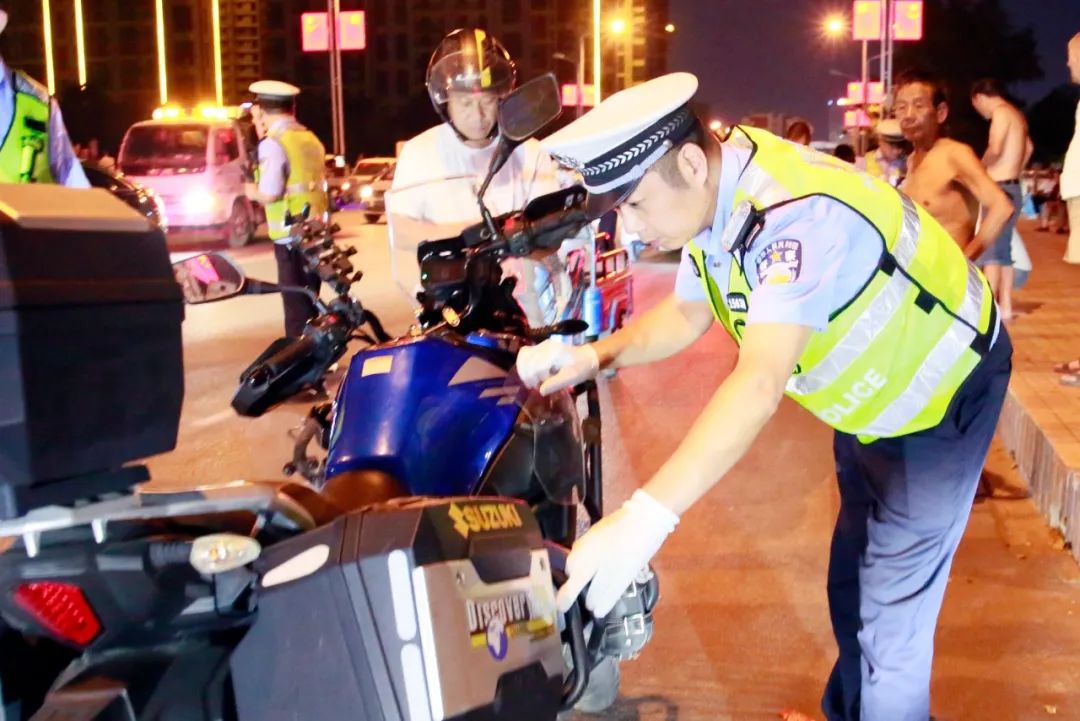▲许昌交警在辖区学校、居民区等路段严查“飙车炸街”违法行为。