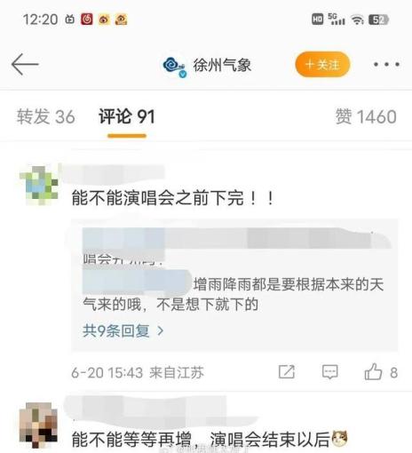 “花了好几千挨浇,徐州气象,你们是故意的吧!”,“就不能在演唱会结束后降雨,徐州气象能不能体谅一下歌迷?”……6月21日晚开始,在徐州气象官方微博下,突然出现了大量类似的留言。