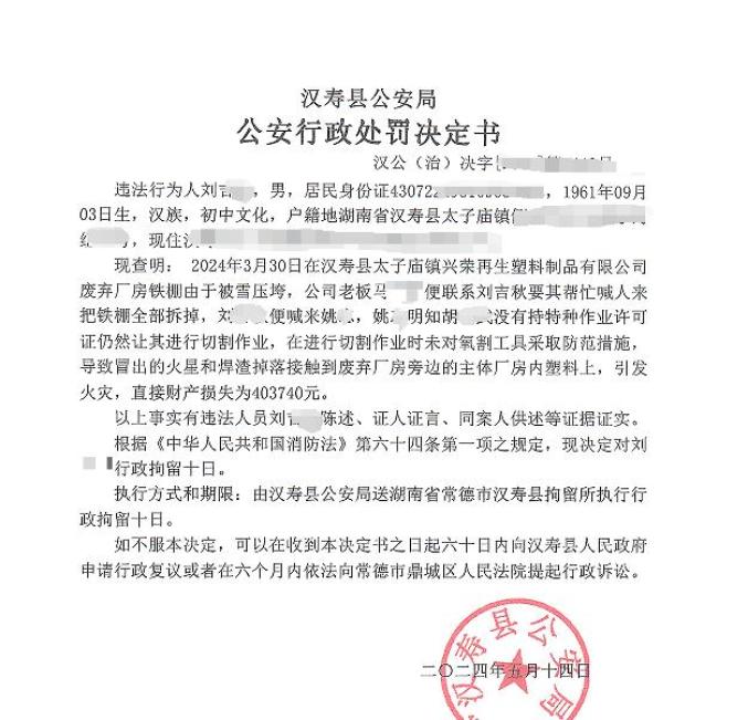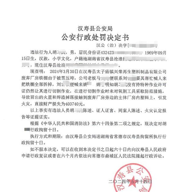 原标题:《违规动焊引发火灾,3人被行政拘留10日!》