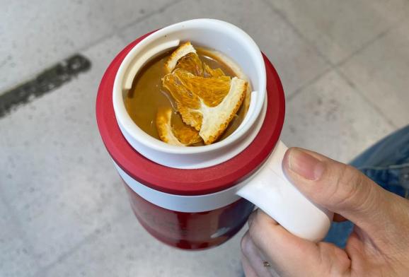 8:20,Even拿着自带杯的盖子,在店门口等咖啡。她的上班时间是8:30,但她已经打过卡了。