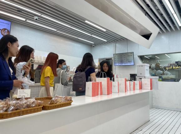 这种上班动线上的排布,从地铁站就已经开始了。14号线陆家嘴地铁出站口就有一家Tims咖啡,8点多柜台上已经排好了一整排待取的咖啡早餐。