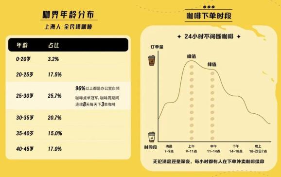 在上海,24小时有人点咖啡外卖,9-11点是咖啡外卖的最高峰。