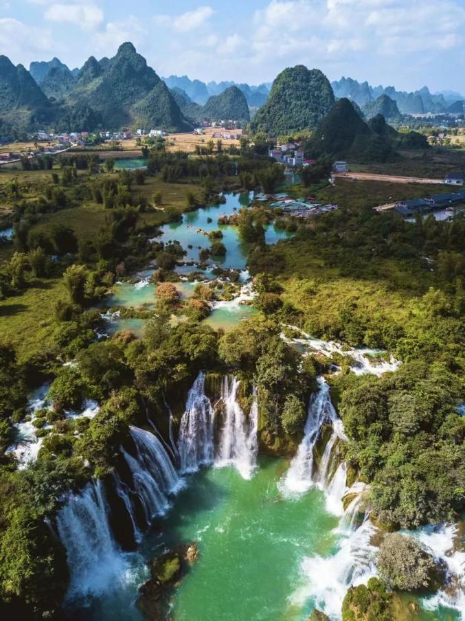 很难想象,桂林到崇左,一南一北,相隔500多公里,地形地貌却惊人的相似。这里有中国唯一的跨界瀑布,有山野烂漫的名仕田园,有仙侠意蕴的峒那屿湾,满目皆是画。