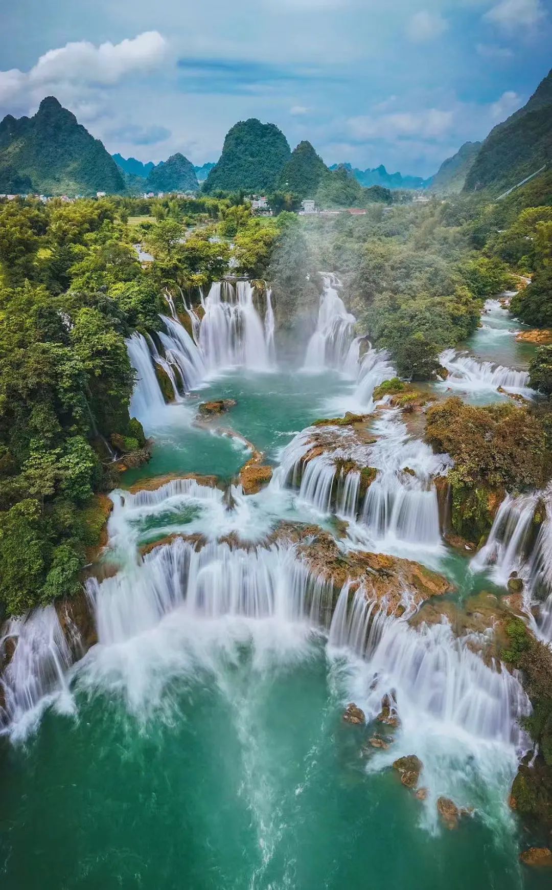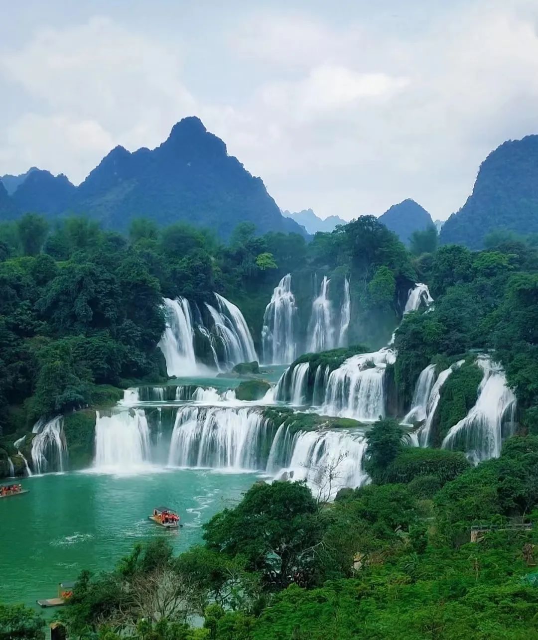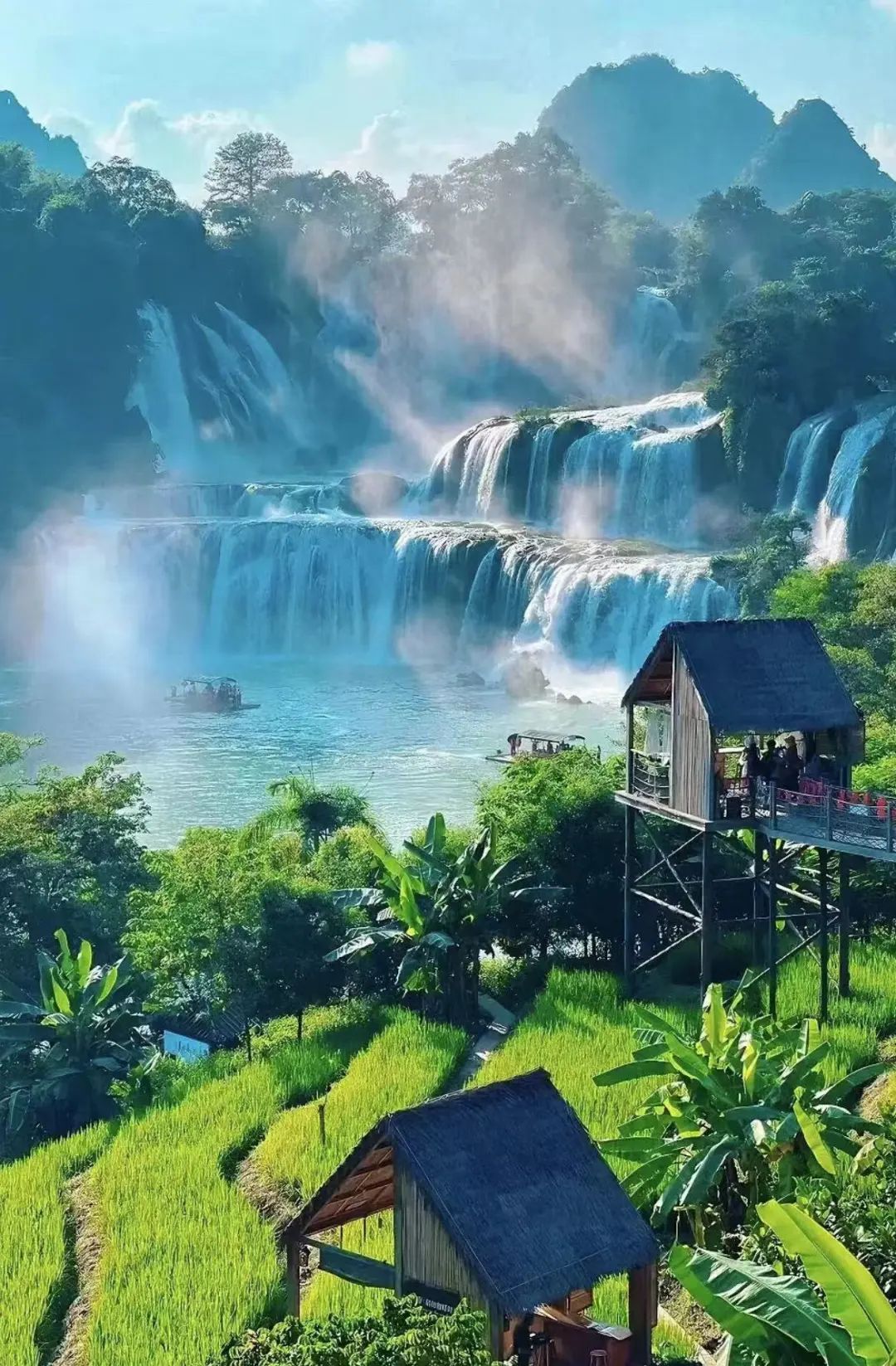 ✅还有种方式就是坐竹筏,在“瀑布淋身”的同时,还能偶遇越南游客。甚至在瀑布边界,还有个跨国集市,真有种出了趟国的感觉。✅从崇左市区去德天瀑布约3小时车程,会经过合那高速,眼前层峦叠嶂的风景,也很惊艳。