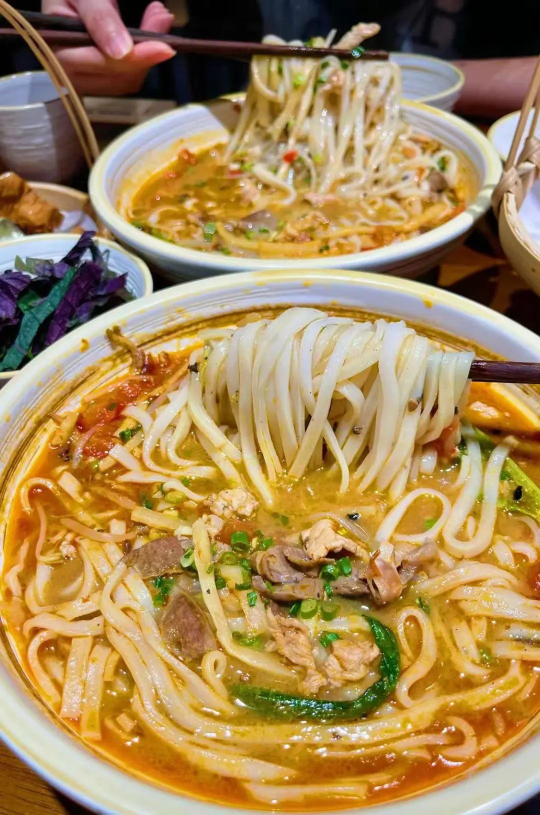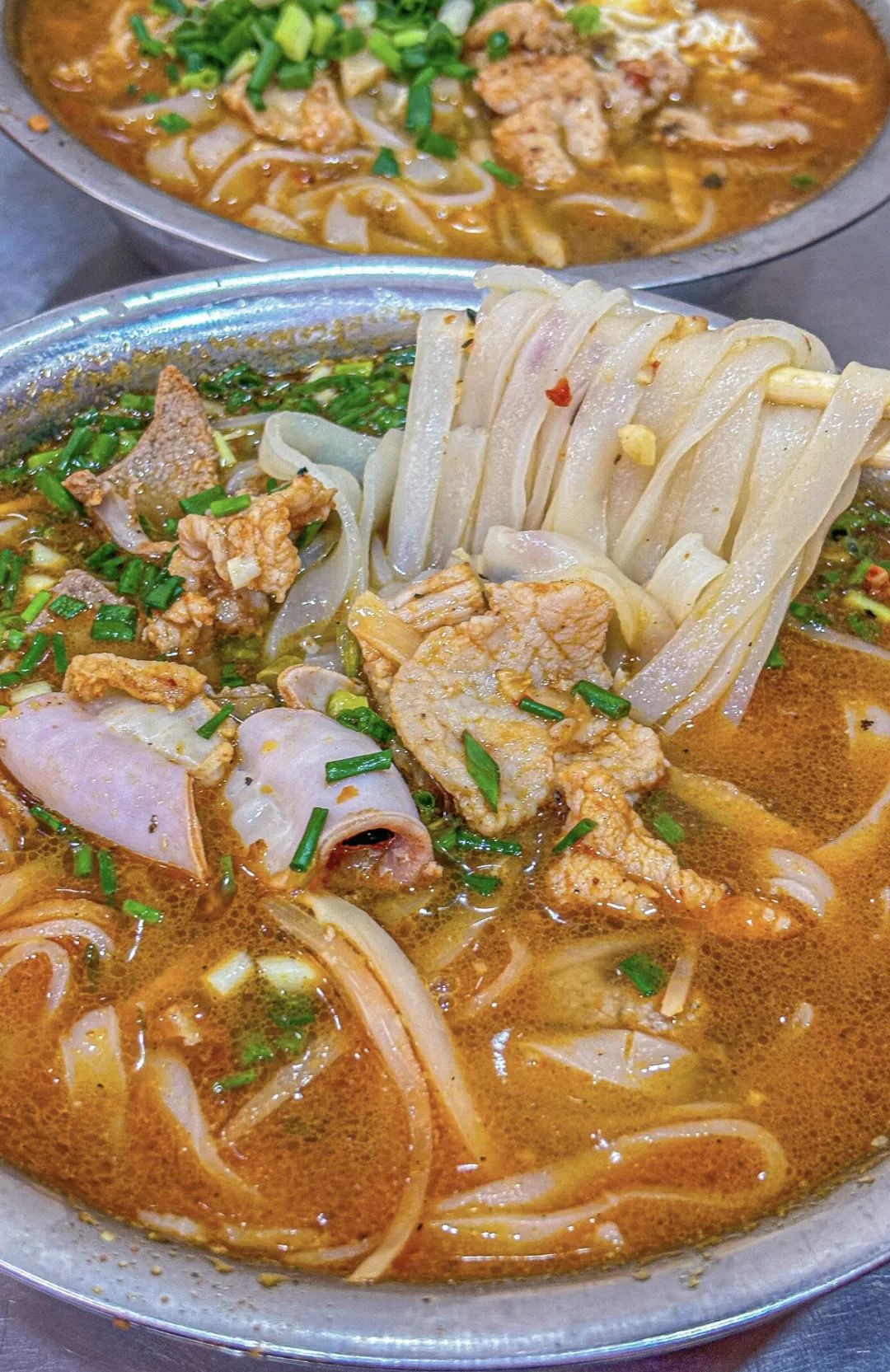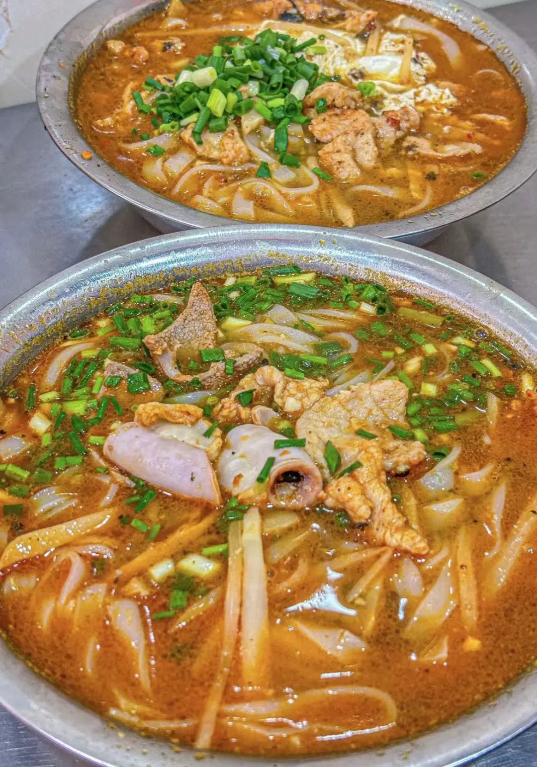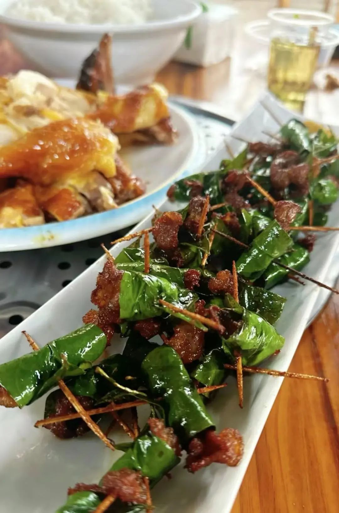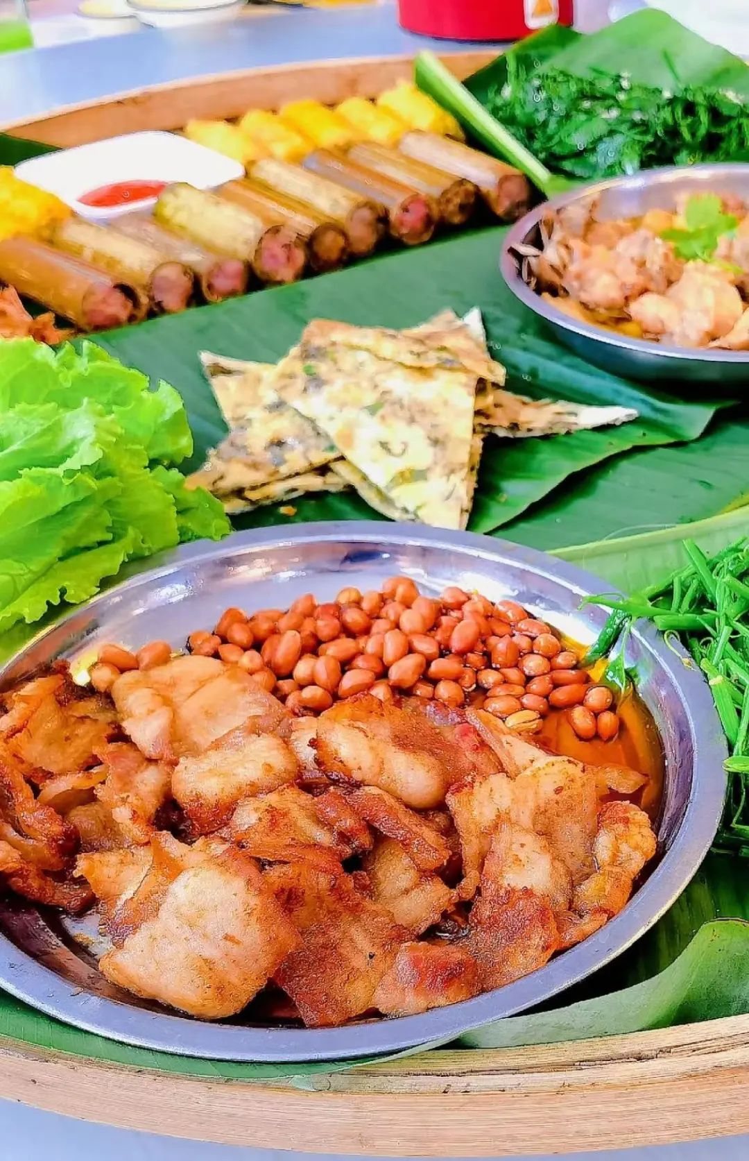 崇左真的是个嗦粉圣地,一日三顿都吃米粉,顿顿不重样。还有簸箕宴、香叶烤乳猪、酸粥、越南卷粉、炸春卷这些,既有壮族传统风味,又有越南小吃,是真的很丰盛。