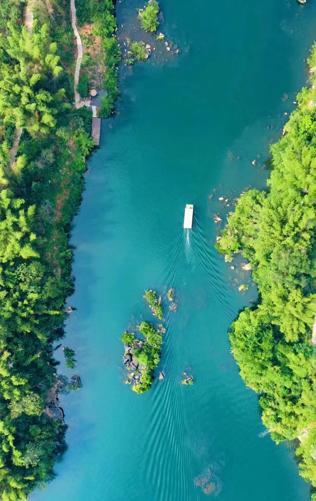 当船家撑起竹筏的那一刻,像步入了画中,突然就明白了东坡先生笔下的“江海寄余生”是如何的快意。