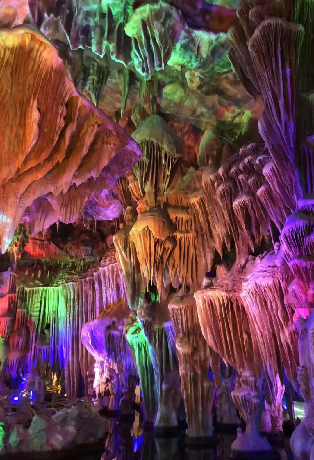 穿越翠绿的山峦,踏入溶洞,仿佛进入了一个神秘的宫殿,洞顶洞壁上的钟乳石像是时间的轴轮,让大自然的美又一次被具象化了。