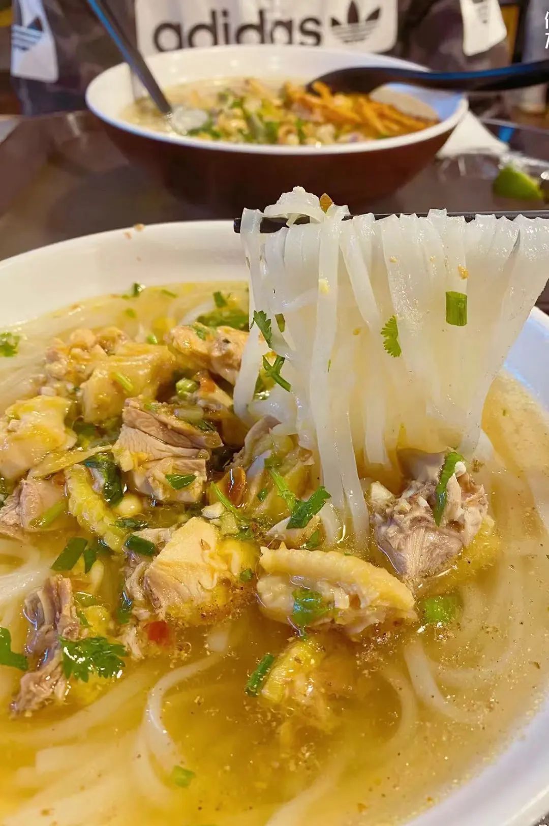 /鸡肉粉/鸡肉粉,是经典的清淡系选手,灵魂在汤底和鸡肉。用的都是散养的土鸡,现熬出来非常鲜,鸡肉也不柴。