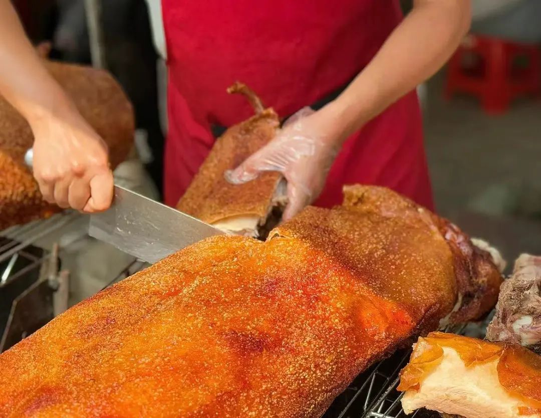 「左记正宗渠黎金牌烤猪」在崇左就很出名,乳猪都是现烤现卖,不少本地人都会专程赶去买。