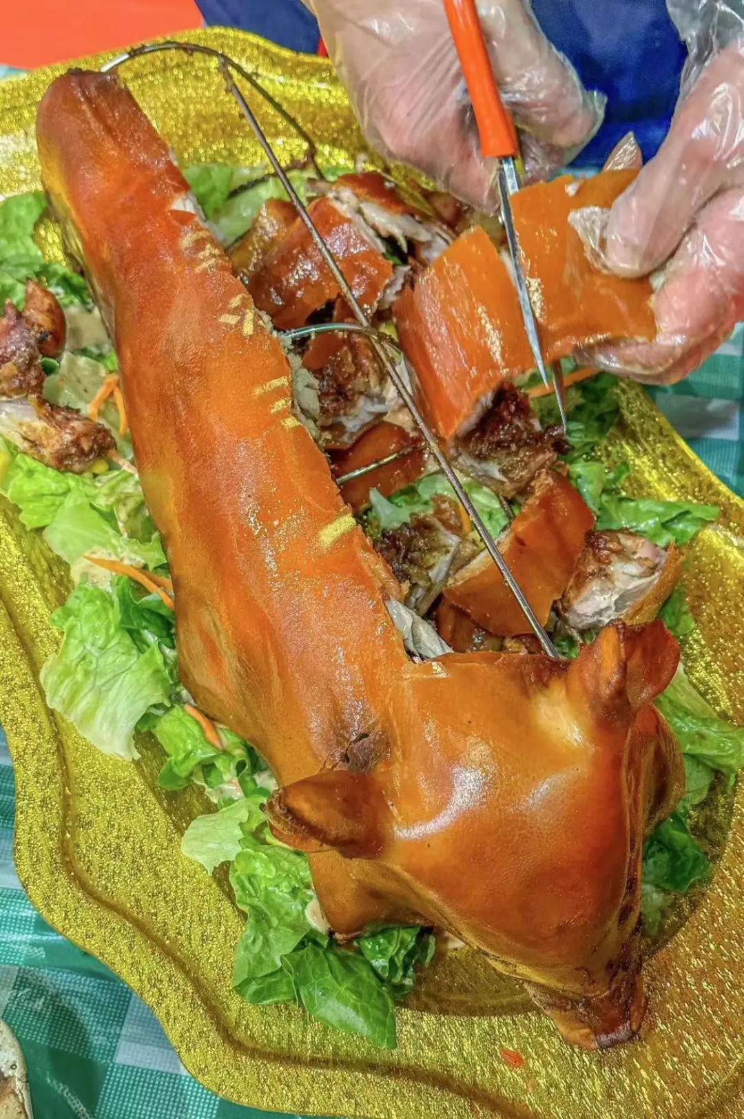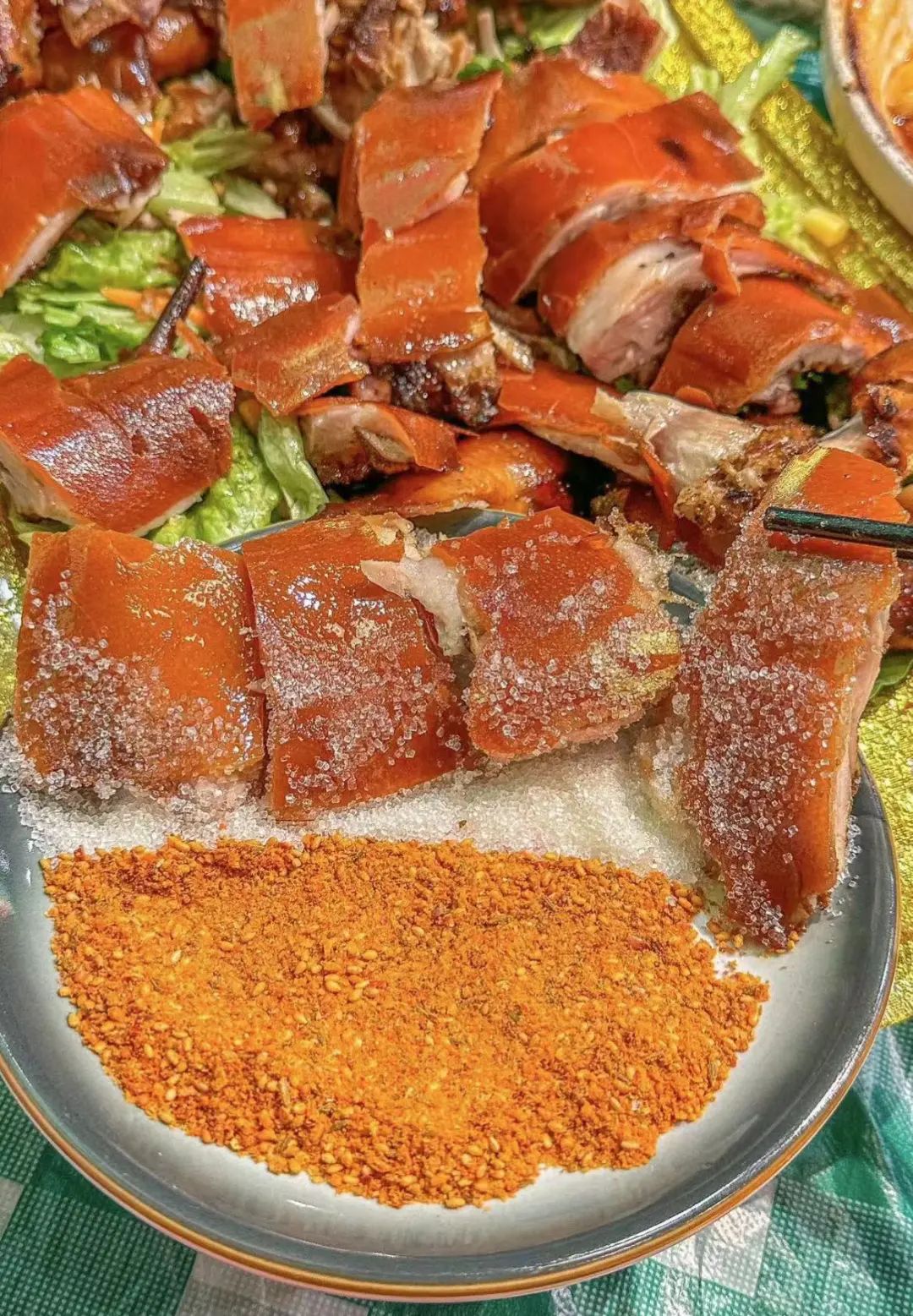 /香叶牛肉+香叶烤乳猪/崇左的烤乳猪真的很绝,用的都是很嫩的小猪,烤之前就会先码料腌制,让佐料渗入猪肉的每一寸肌理中。
