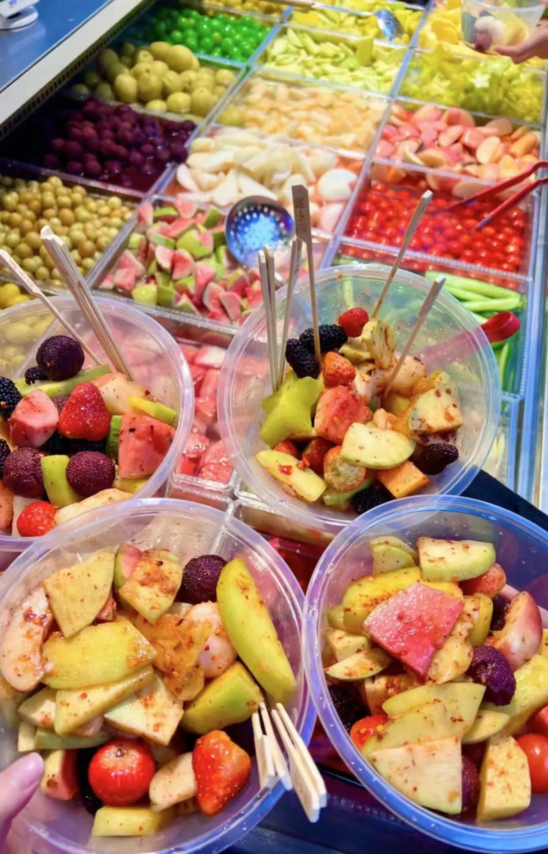 还有广西的酸野,新鲜的水果拌辣椒,酸酸辣辣,看起有食欲、吃起更是爽口,一天能干3盆的节奏。
