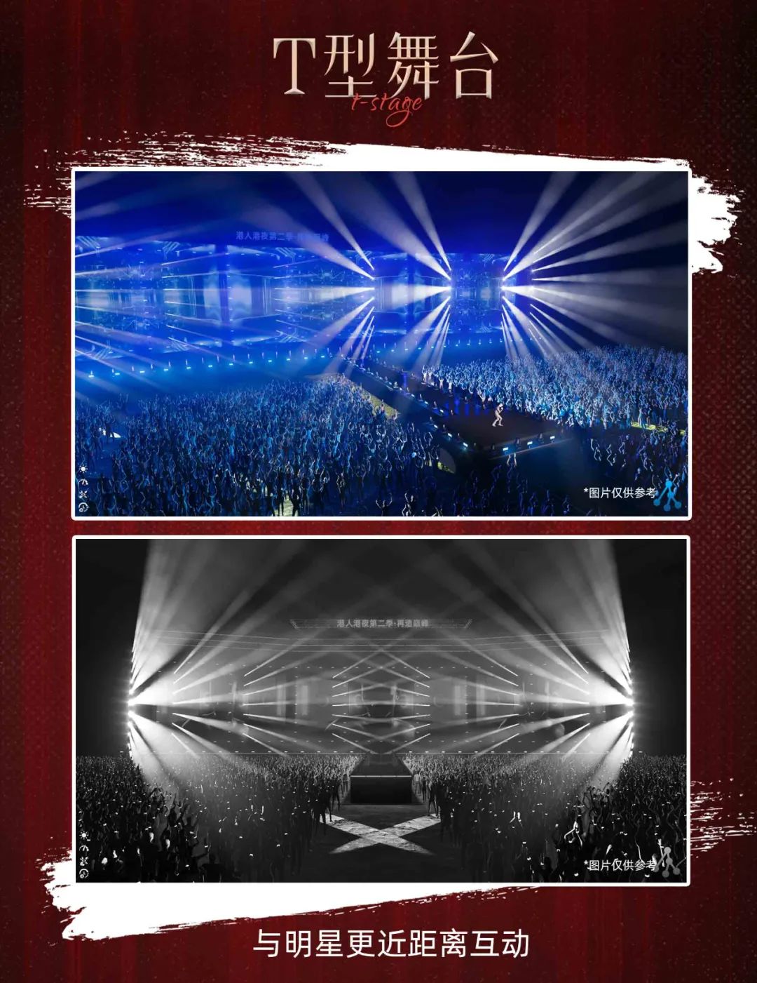 本次第二季“港人港夜”演唱会将首次搭建超长T台,与明星更近距离互动,内场观众与明星触手可及!不仅舞台离观众更近了,屏幕也更大了!超长大屏横跨整个舞台,畅造超绝视觉效果,大大减少视线遮挡。