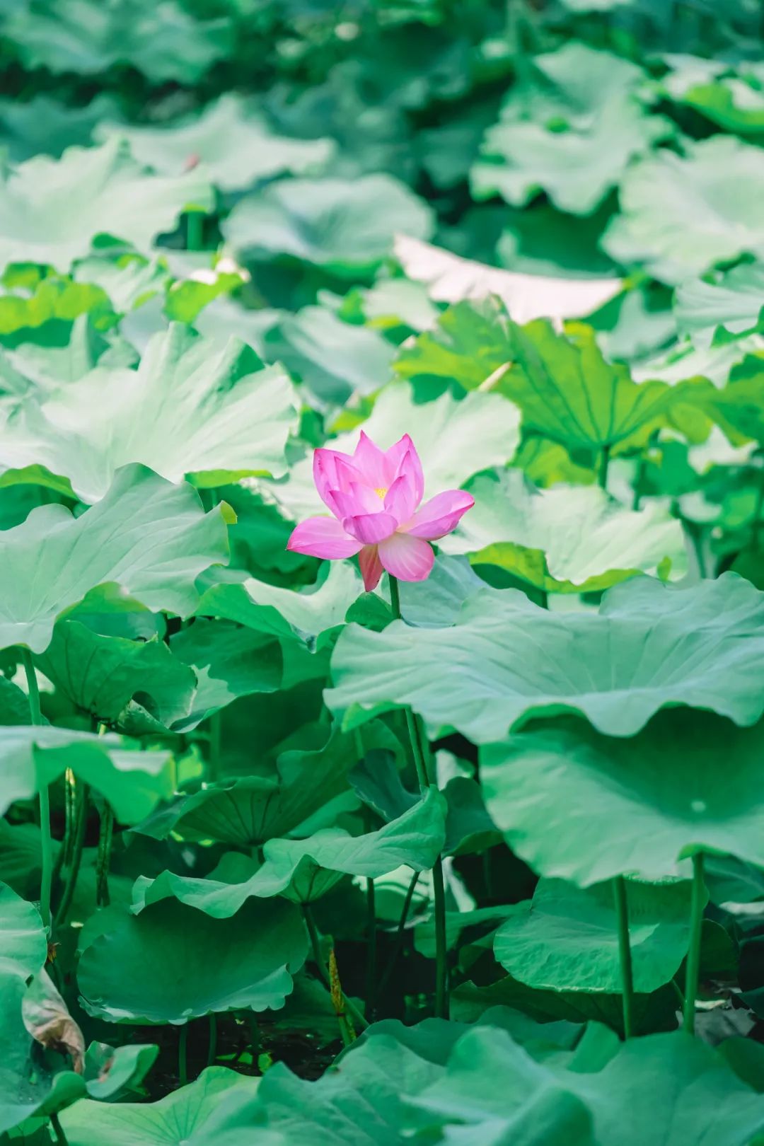 叶间的荷花悄悄探出头