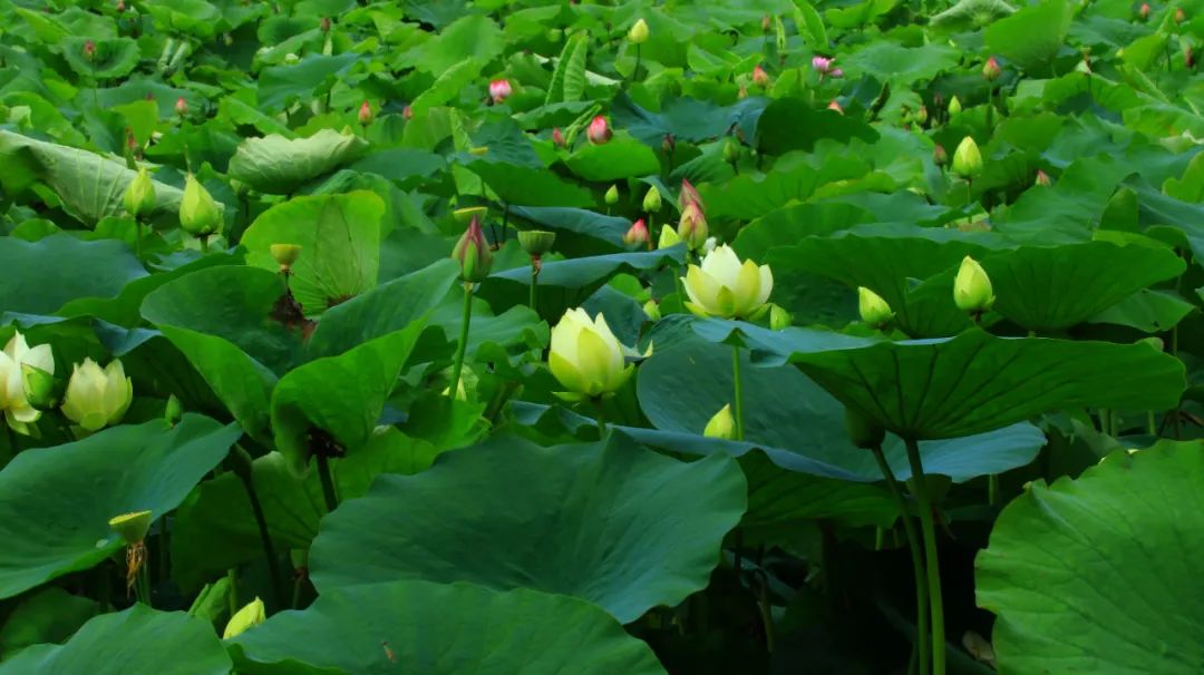 荷花塘已冒出大批的花苞