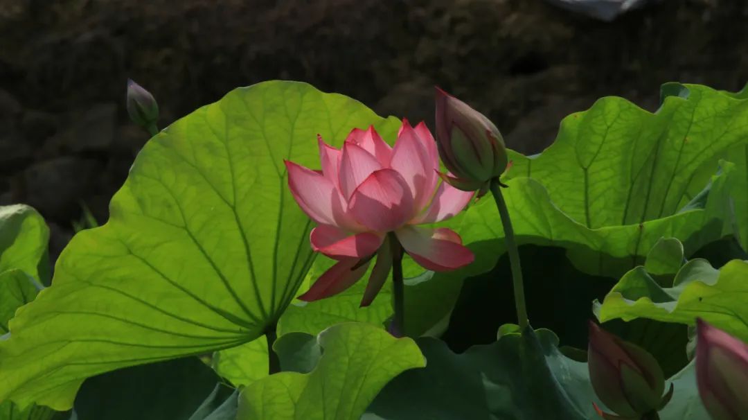 数枝“性急”的荷花已悄然绽放