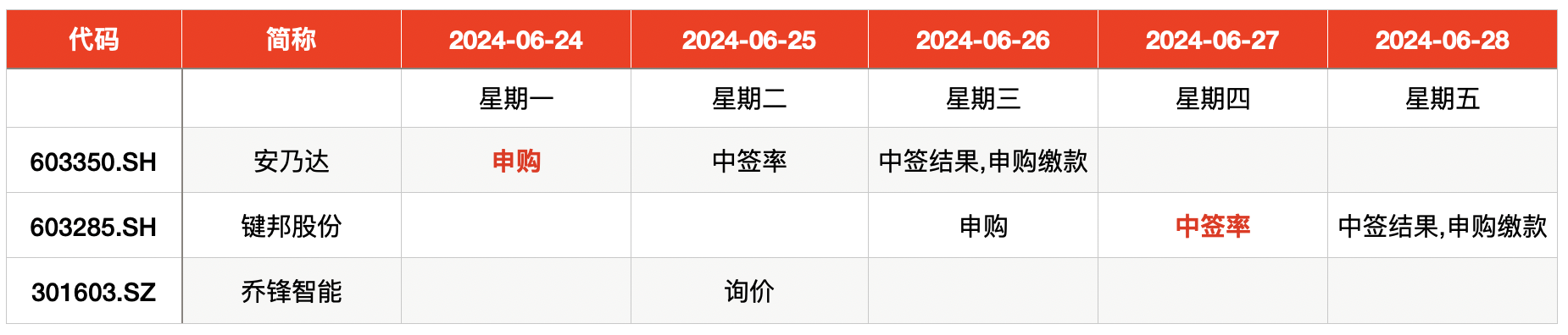 本周投资者将迎来2只新股申购。周一申购的新股为安乃达;周三申购的新股为山东键邦新材料股份有限公司(简称“键邦股份”,603285.SH)。