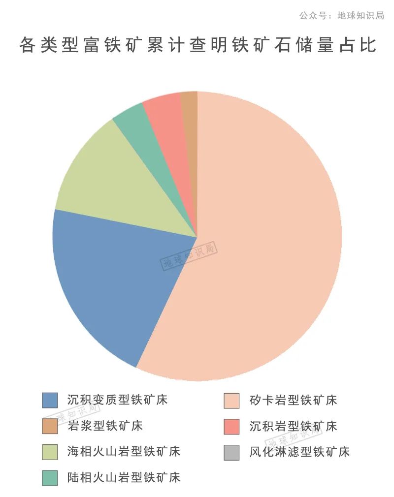 该类型铁矿占世界铁矿总储量的60%,占富铁储量的70%,在我国占铁矿总储量的58%,占富铁矿储量的27%。中国铁矿床类型多为沉积变质型铁矿床▼