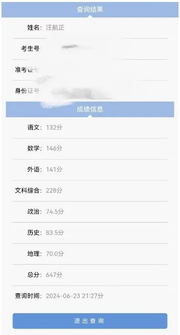 6月23日晚,记者获悉,成都外国语学校考生汪航正取得了文科647分的优异成绩。