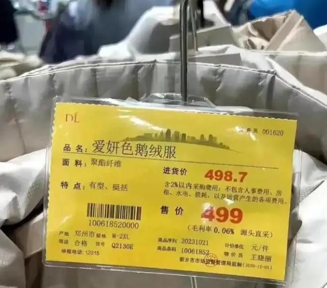 胖东来精酿小麦啤酒价目表,受访者供图甚至,胖东来会将许多产品的进价和售价全部公示——去年,胖东来因“一件羽绒服仅赚 3 毛钱”冲上热搜时,外界差点惊掉下巴:胖东来商场羽绒服的价签上,一件进价498.7元的羽绒服只卖499元,商场利润仅0.3元。