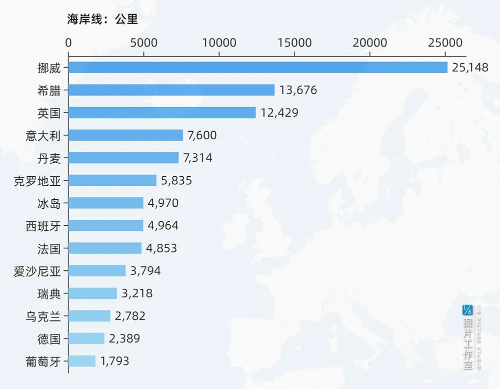 欧洲各国海岸线长度排名