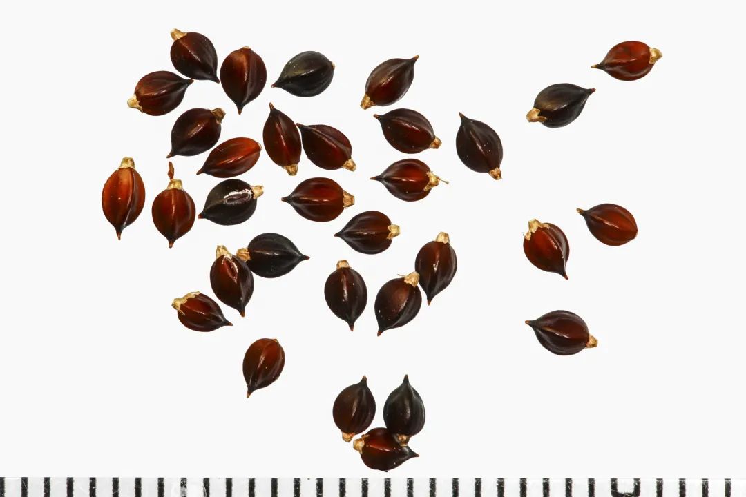 瘦果宽卵形,具3钝棱,顶端有喙突,黑褐色, 表面光滑有光泽,果柄常宿存。种子无休眠,种子消毒后可直接播种。