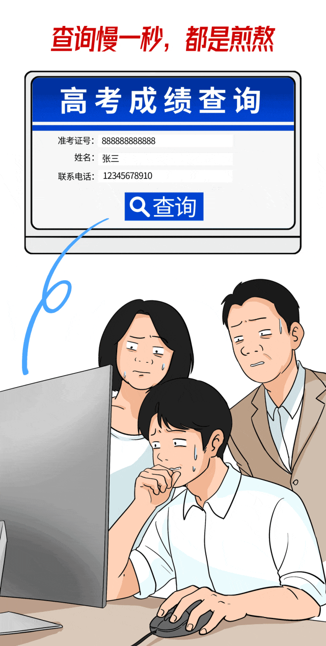 我们怕扛不住万千学子,一下子涌进来查分,瘫了,丢人还误事。不光不能瘫,还要快。