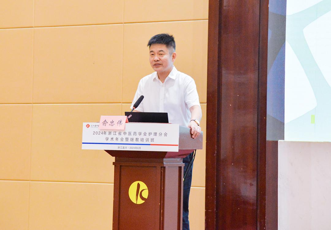 嘉兴市中医药学会会长、嘉兴市中医医院党委书记俞忠伟,浙江省中医药学会护理分会主任委员徐敏作开幕式致辞讲话。
