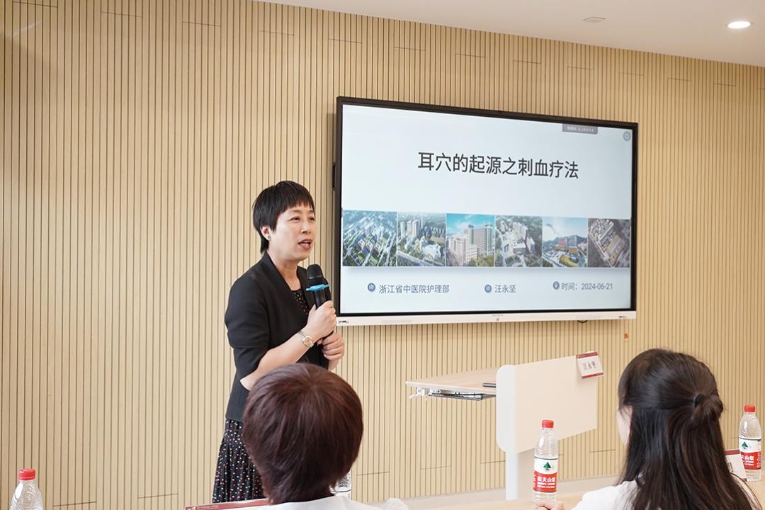 大会期间,护理分会主任委员徐敏还带队前往嘉兴市秀洲区人民医院开展“中医护理技术专项培训班”,浙江省中医院汪永坚和戴益慧等专家就耳穴疗法和平衡火罐技术展开了理论授课和实践指导,培训嘉兴地区的护理人员约60人,进一步提升了嘉兴基层医疗机构的中医药服务能力。