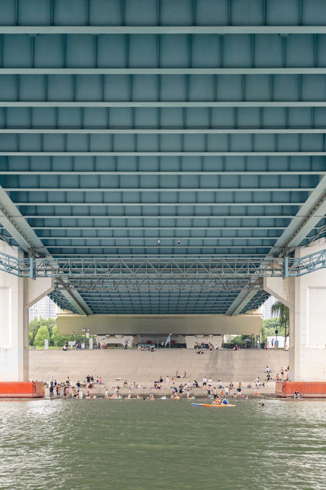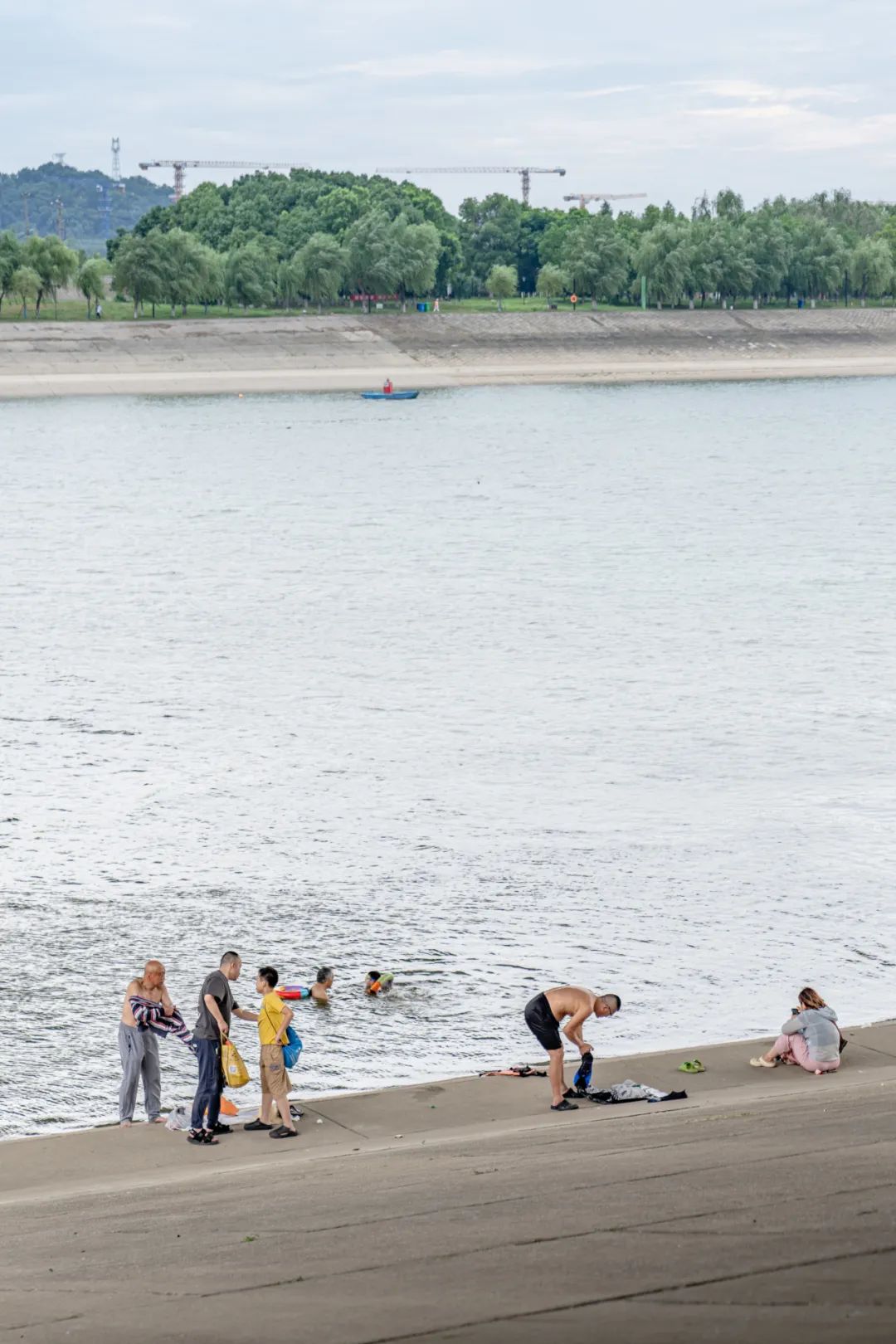 2024年6月18日,这是一个平凡夏日的傍晚,下午五六点钟的日头仍然有些炽热,一对老夫妇带着他们的小孙子来到了汉江边。蓝色的古田桥下热闹非凡,有坐在桥下纳凉闲聊的,有拉着长线放风筝的,当然最多的,还要数来汉江玩水的。