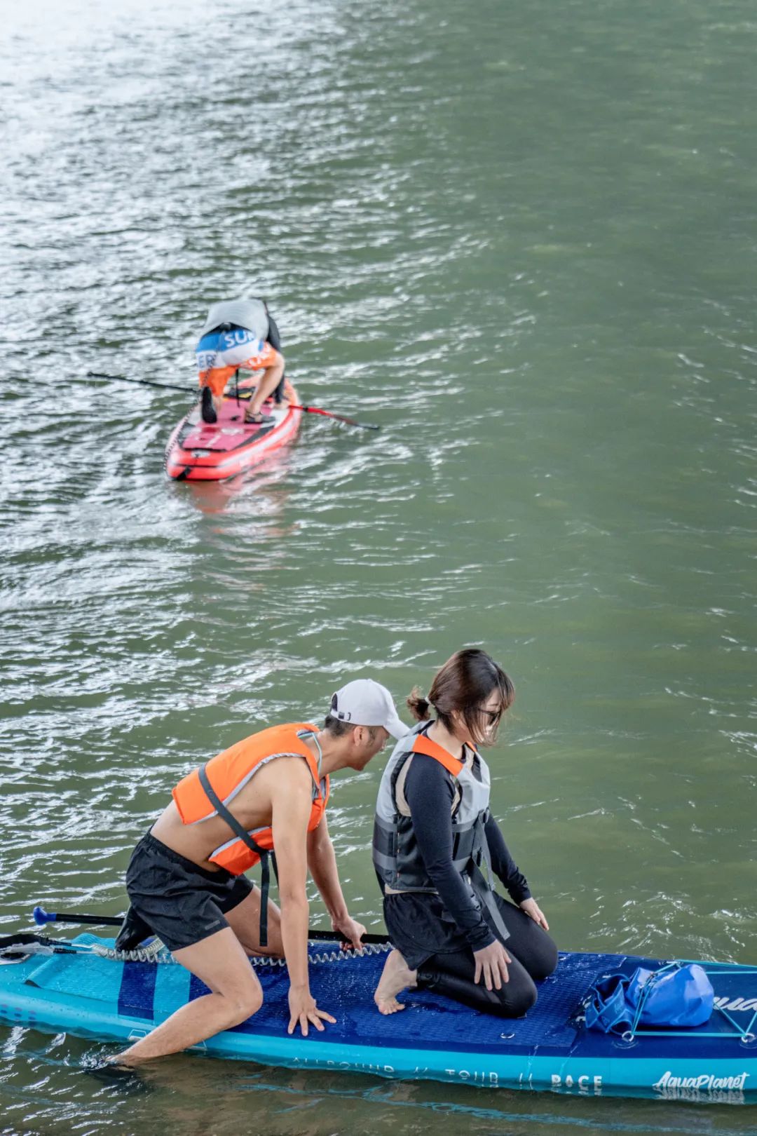 |玩桨板的年轻人老夫妇也是带孙子来游泳的,小家伙儿穿着泳衣戴着泳镜,身上套着游泳圈,在爷爷的指导下尽情地在近处的浅水区扑腾。