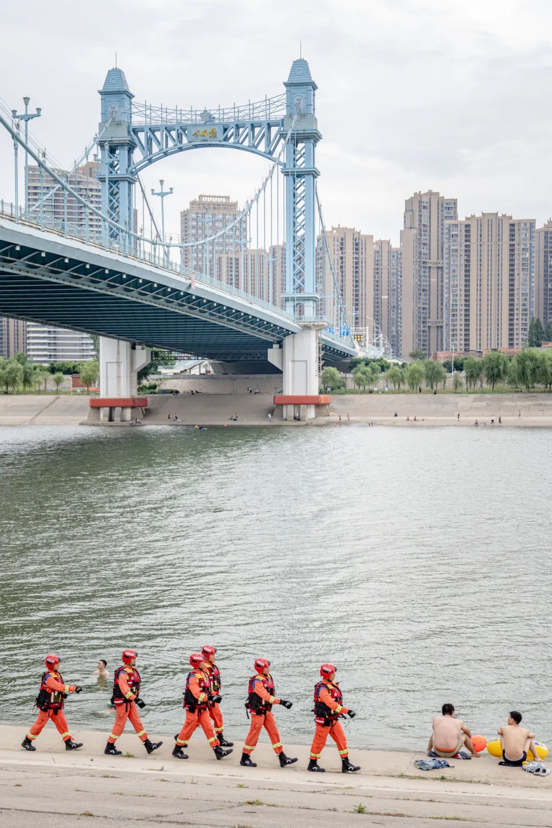 那是汉江湾水上消防救援站的消防员们,正在汉江岸边进行安全巡逻。