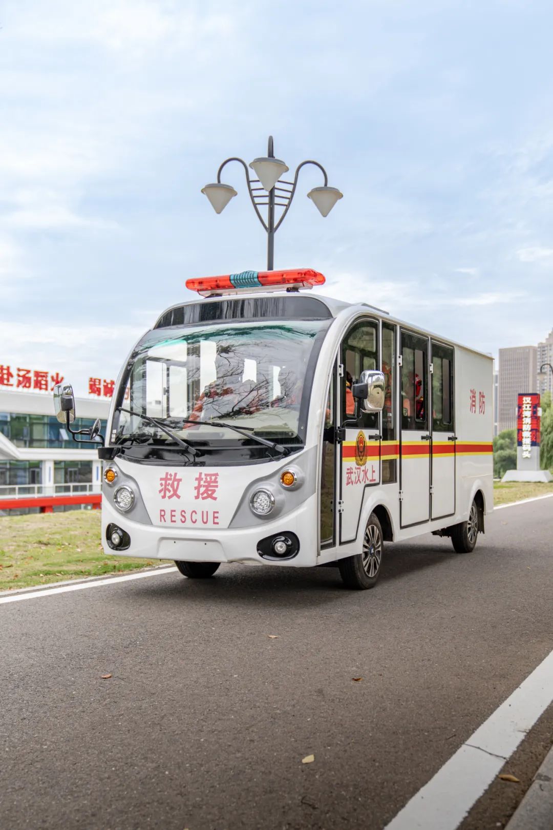 夏日在江边戏水的人多,发生溺亡危险的概率大大增加,汉江湾水上消防救援站特别配备了消防巡逻车,队员们装备整齐,亮灯巡视,顺便输出一波安全知识。
