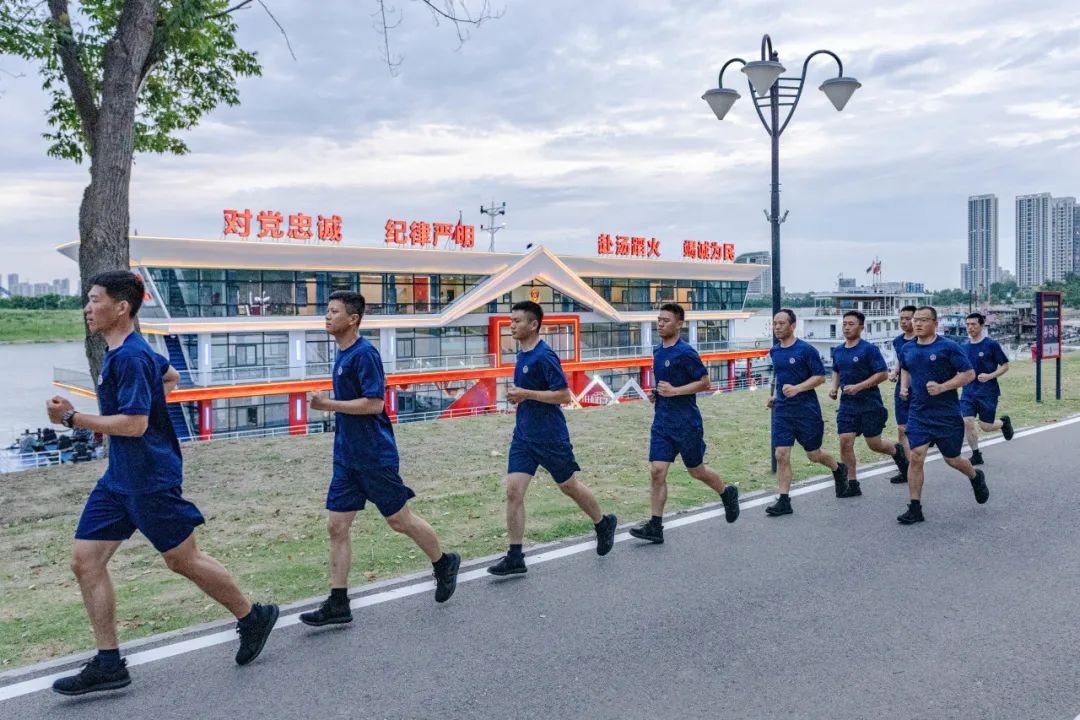 |晚饭后跑步的消防员们消防救援是十分需要体力的,尤其是水域救援,在水中人没有支点,除了技巧全靠体力。