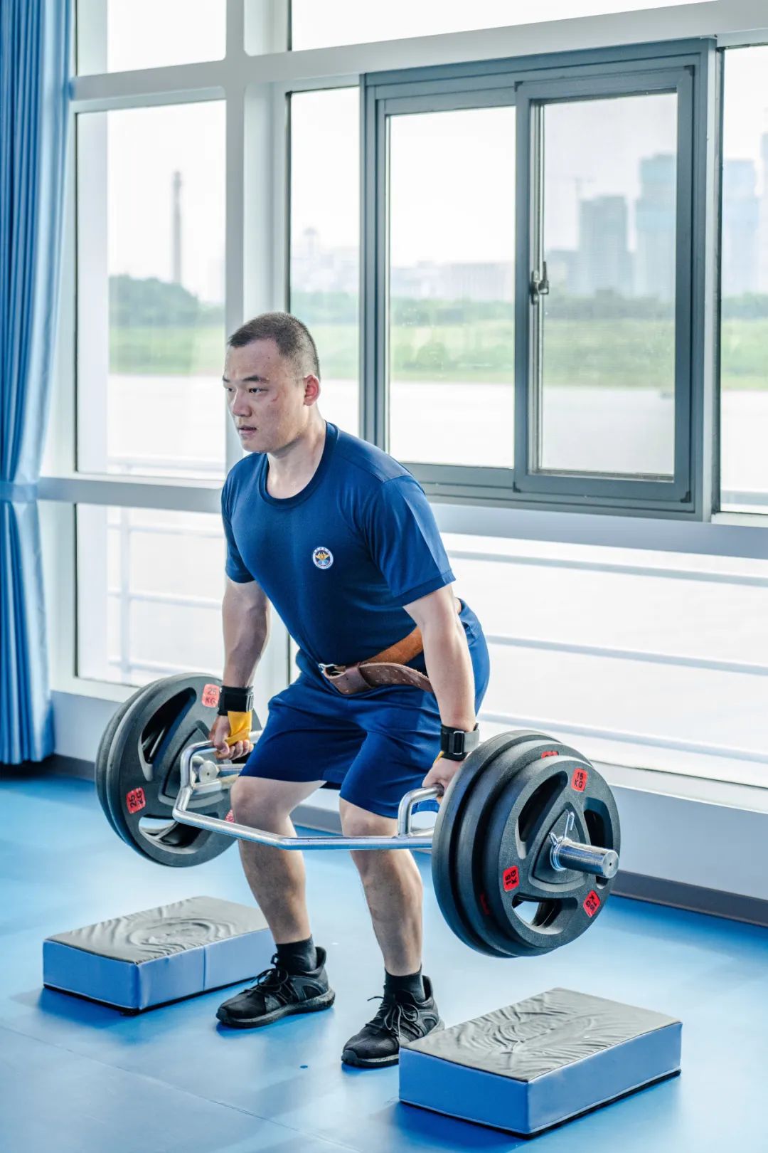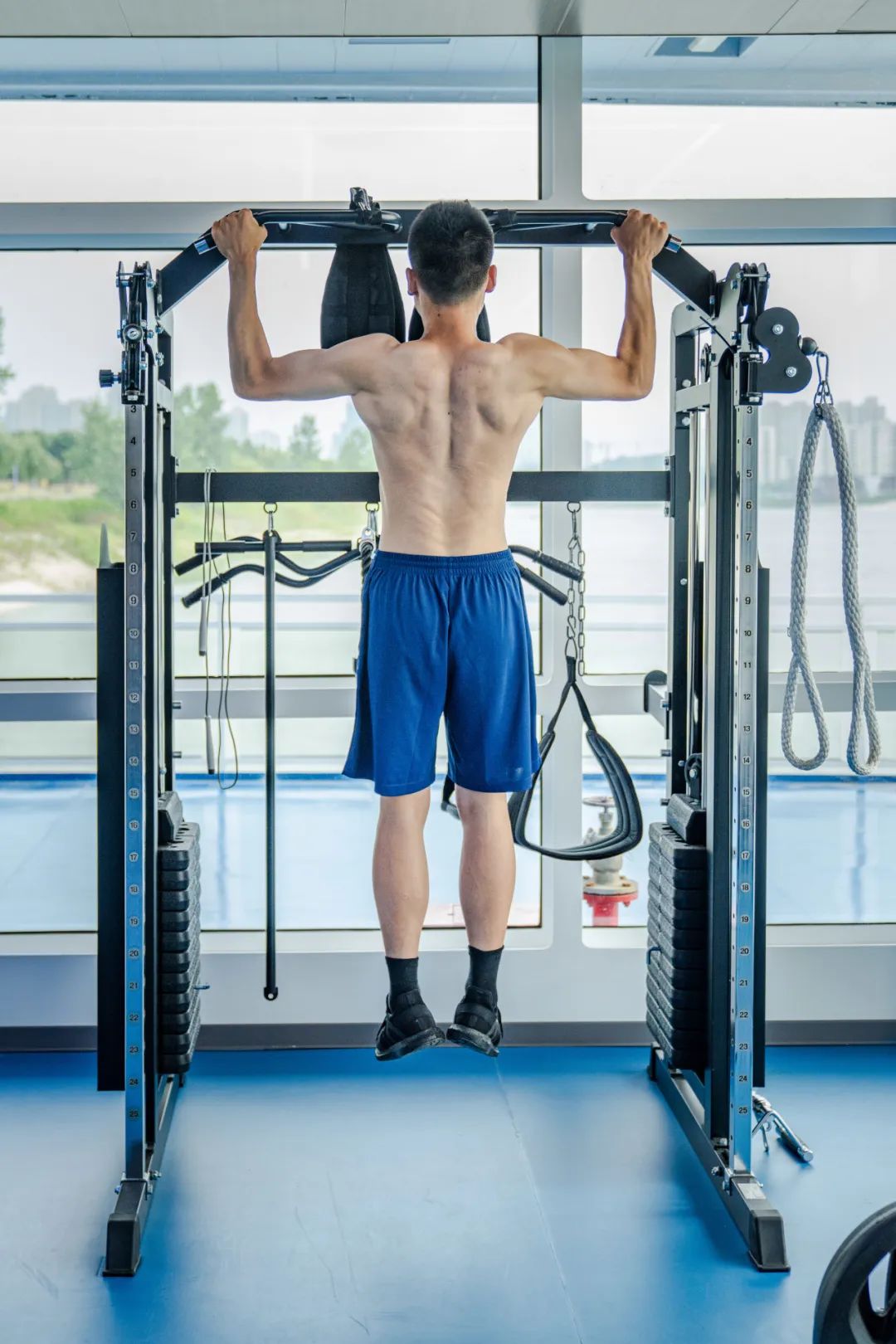 |“蓝朋友”身材超好哑铃、跑步机、划船机,沐浴着江风的健身房内,充满了荷尔蒙的气息。