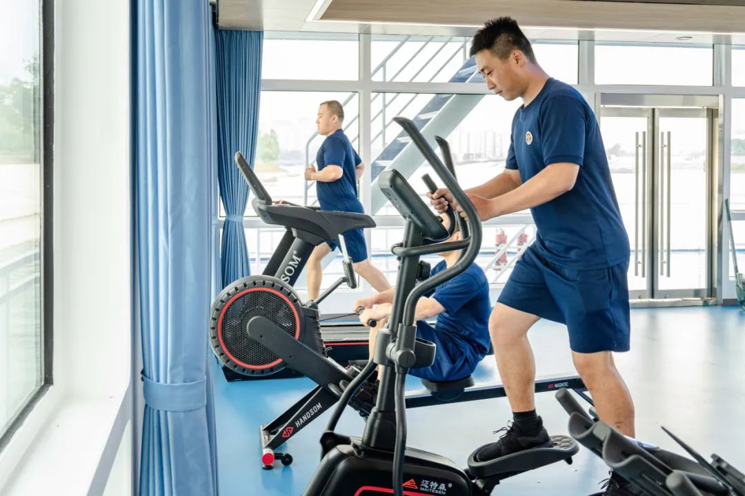 |健身房内设施多样除了常规的体能训练,他们还要学习一些船舶相关知识。
