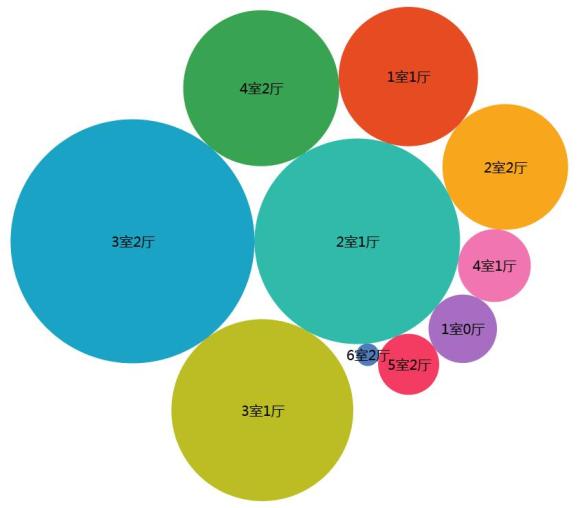 3室2厅户型的在售房源量最大,其次是2室1厅户型,可看出大户型房源相对较多。