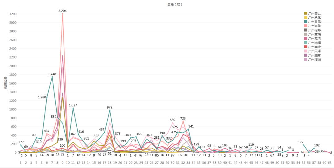 提取不同层高的房源数量数据。