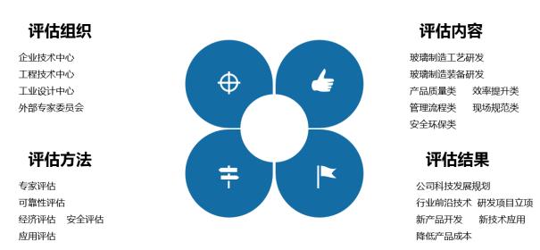 蚌埠凯盛根据战略制定过程中所收集到的内外部信息,以及通过了解并预测行业技术发展状况,结合公司实际管理情况,建立企业技术中心、工程技术中心和工业设计中心三个内部技术评估组织,完善技术评估体系。同时,为加强技术评估的合理性和权威性,聘用了中建材玻璃新材料研究院集团有限公司、浮法玻璃国家重点实验室和中国建材国际工程集团有限公司等行业内相关专家和合肥工业大学、安徽科技学院等高校相关专业专家共同作为外部专家委员会成员,负责对联合攻关重大研发项目和技术委托项目进行评估,形成了内外部评审双轮驱动的技术评估体系。公司致力于引领全球玻璃高端装备行业发展,推动玻璃制造行业进步。目前创新水平是国内玻璃装备行业最高,前言科技研发能力最强,技术水平已经从跟跑、并跑发展到了领跑。研发了多个安徽省首台(套)重大技术装备,浮法玻璃退火窑荣获工信部“单项冠军产品”称号,超薄太阳能玻璃压延机技术水平世界领先。