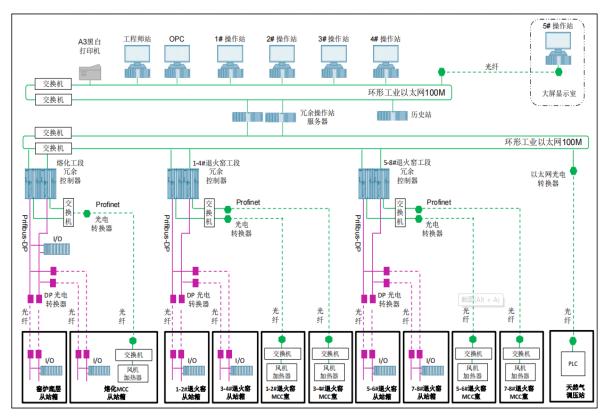 图5 数字化拉边机成型装备4.智能数采集控系统:浮法玻璃生产线所必需的大型中央控制系统,实现了从仅控制热工工段向玻璃全厂全工段进行控制和数据采集的跨越,完美兼容MES、ERP等控制系统。经过多年的优化升级,系统已具备控制高精度,向上向下高度兼容性,高拓展性,高度智能学习能力等等优点。在提高玻璃工厂成品率、产品质量的同时,还达到了节能、降排、减少冗余人员的目的,可实现生产工艺数据自动数采率达到90%以上,具有多接口兼容性,自我学习分析数据的能力。该系统可用于特殊玻璃(超薄、高铝、中铝、TFT、高硼)生产线,已为国内外用户提供超过100套该系统,出口至印度、伊朗、埃及、越南等十几个国家。