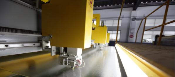 图8 高精度优化切割设备8.光伏压延玻璃冷端装备及控制系统:伏压延玻璃冷端装备及控制系统,适用于生产普通压延玻璃、超白太阳能基板玻璃等不同产品。该产品可覆盖一窑一线、一窑两线、一窑四线、一窑五线多种类型。并为客户提供高、中、低端压延冷端生产线的总包服务,满足客户的多样化需求。另外,近年来公司不断开拓创新,开发了在线垂直升降输送系统,创造性的实现了玻璃从二层到一层的快速,高效,在线输送,大大缩短了厂房的长度,为客户节约了资源,降低了筹建成本。