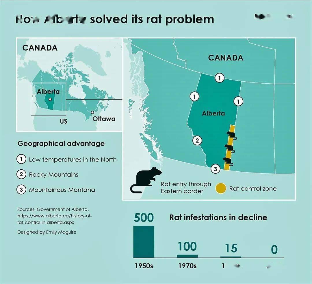 铁血手段下,1960 年,阿尔伯塔的鼠患已降至每年 200 起以下,2002年就宣布无鼠了。