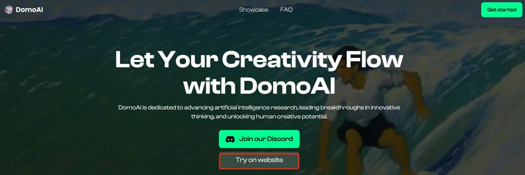 第一步:访问 DomoAI 的官网,使用谷歌邮箱登录,然后点击「Try on website」。