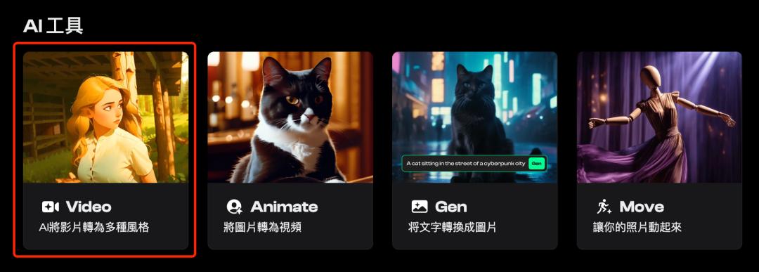 链接:https://domoai.app/DomoAI 主要有四大功能,包括 AI 转绘、图生视频、文生图以及角色动态。