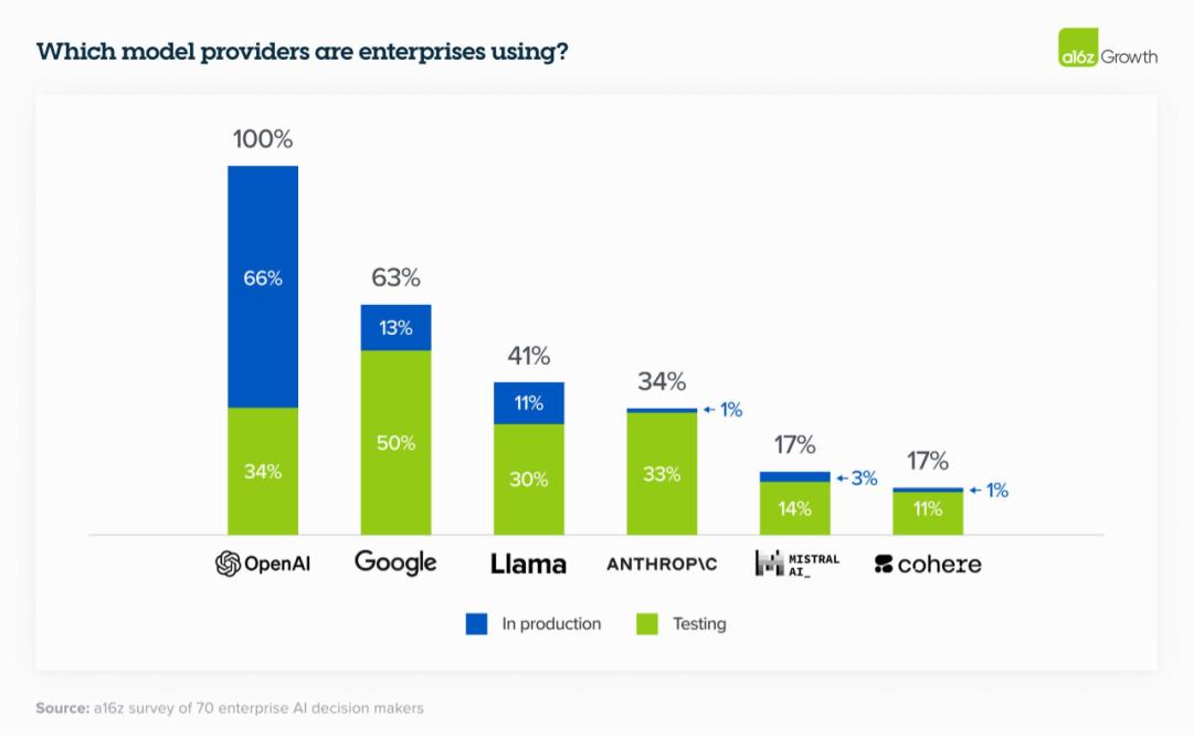 OpenAI 凭借大模型 API 服务,吸引了大量的开发者和企业客户,挤占了谷歌在 AI 服务市场的份额。