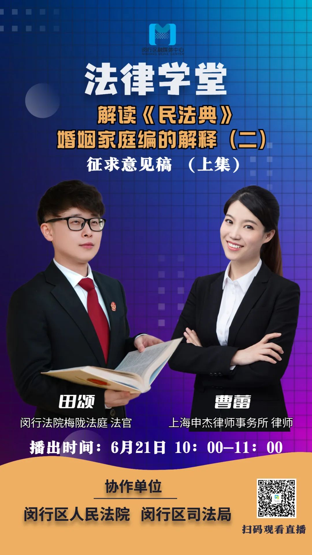 在《关于适用〈中华人民共和国民法典〉婚姻家庭编的解释(二)》征求意见稿中,我们还看到了对重婚、假离婚、同居关系下的财产分割,以及赠与财产等复杂家庭关系等的明确规定。这些细节不仅影响着家庭成员间的权利与义务,而且关系到每个家庭的幸福与和谐。本期《法律学堂》中,闵行法院梅陇法庭的田颂法官和上海申杰律师事务所的曹蕾律师也以真实案例中的应用效果的解读,以及在遇到家庭法律问题时如何更好地维护自己的合法权益。由于制作本期节目的时候,这份《司法解释》还没有最终发布,我们采用的是《征求意见稿》来进行解读,后续以最终发布的《司法解释》为准。