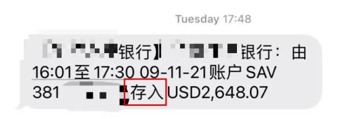 (1)会有一条短信通知为该笔资金已入账,而这笔资金仅仅是“显示在收款人账户上的数字”(又称“挂账”),非实际到账的可用金额。
