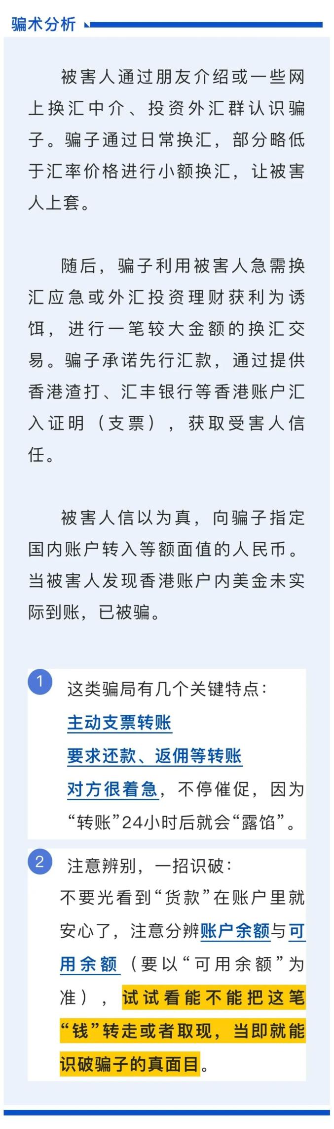 即使付款人没有撤销支票,此支票也可能因资金不足、签名不符等其他因素达不到符合银行支票兑现条件,导致无法到账。骗子也会利用“跳票”显示的时间差行骗,让被害人误以为美金已汇入。