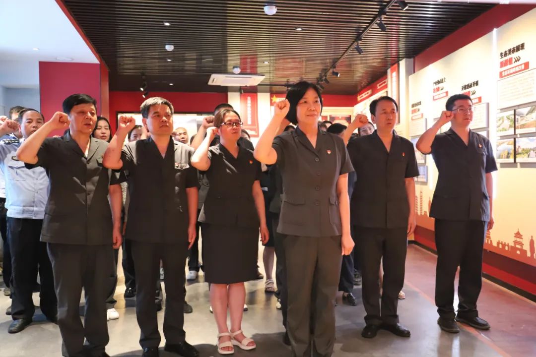 在守护秦岭展厅,干警们在王浩院长的带领下,面对鲜红党旗,重温入党誓词,用铮铮誓言表达对党忠诚、为党奉献的坚定信念和决心。以案为鉴,警钟长鸣。参观学习结束后,干警们纷纷表示,此次廉政警示教育是一次精神的洗礼和灵魂的触动,在今后的工作和生活中,将深刻汲取秦岭违建教训,牢记“国之大者”,时刻绷紧“纪律弦”,守牢“廉洁关”,做到知敬畏、存戒惧、守底线,以实际行动永葆法院队伍忠诚干净担当本色。