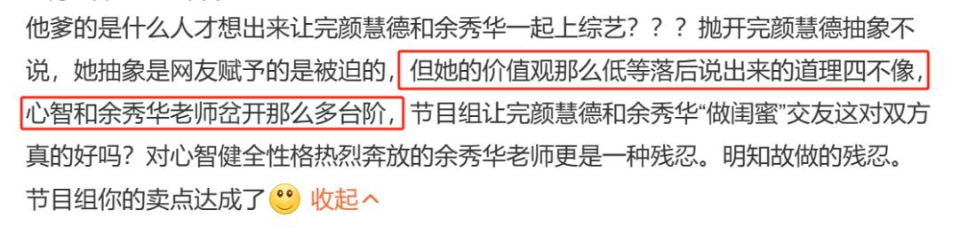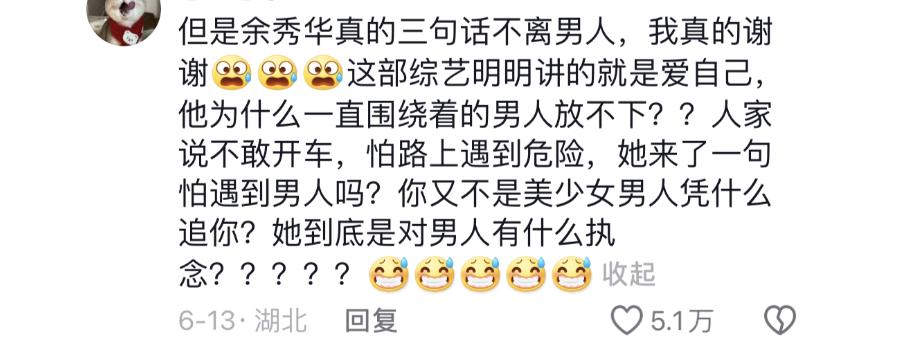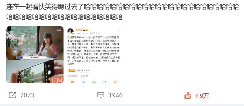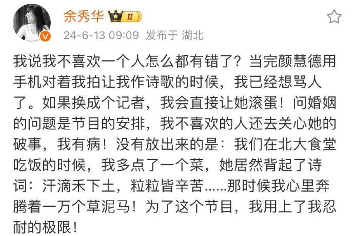 紧接着,余秀华直接在镜头中表示反感。节目外也上网开怼,公开不满。